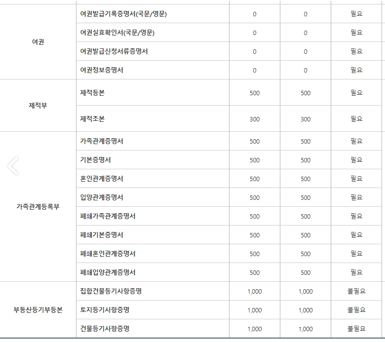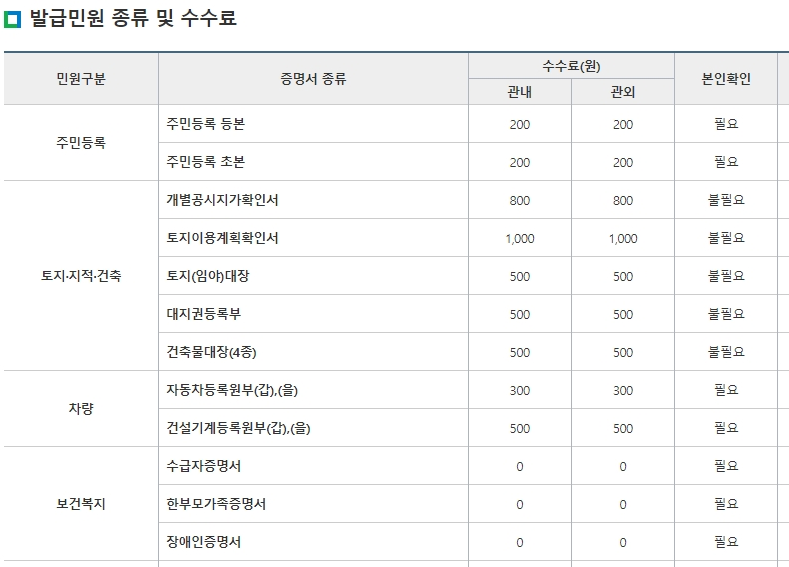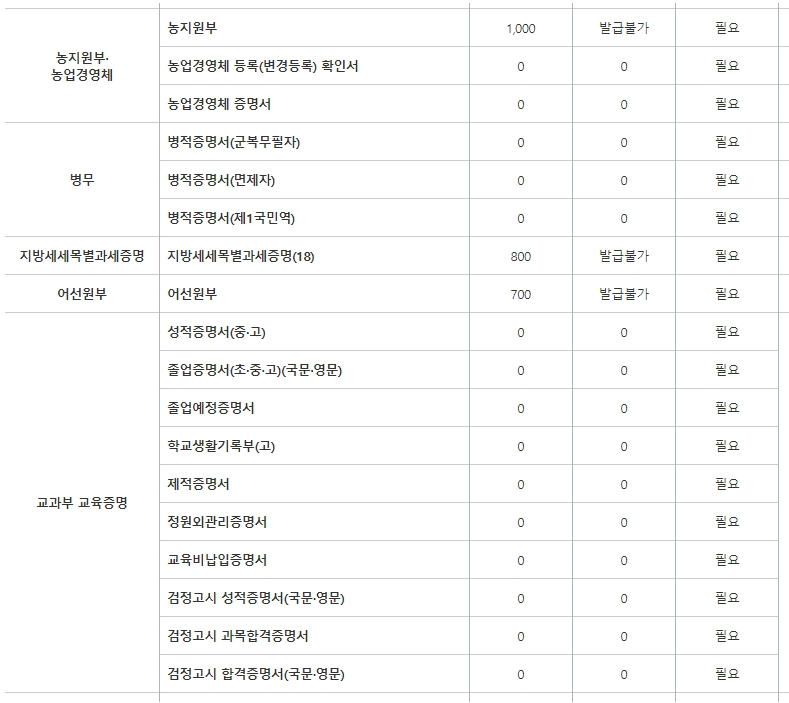무인발급기 가능한증명서