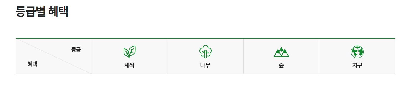 적립 포인트 기준으로 등급이 산정되며 친환경제품 구매 시 그린카드를 사용하여 에코머니 포인트가 100포인트 이상 적립 및 총 결제금액 2천원 이상 또는 친환경 제품 구매 참여기업에서 결제 수단 관계없이 2천원 이상 친환경 제품을 구매할 시 해당됩니다.